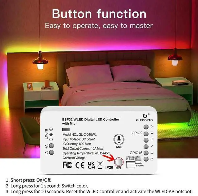 • GLEDOPTO ESP32 WLED LED Controller for LED Strip Lights_L50A
