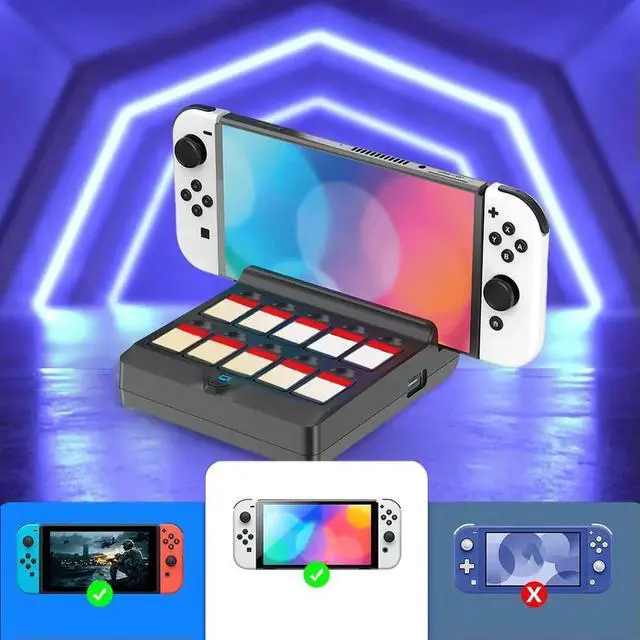 • TV Docking Station with 10 Game Slots Charging Dock Station Base TV Dock Station for Nintendo Switch/Switch OLED