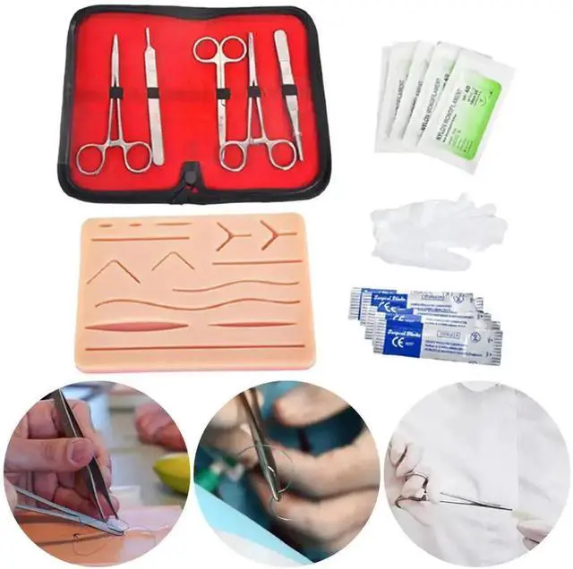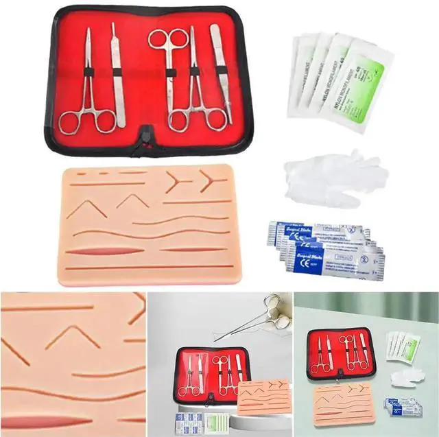 • Silicone Suture Practice Kit with Skin Pad Anatomy Practice Suture Pad Reusable Suture Tool Set for Stitch Demonstration