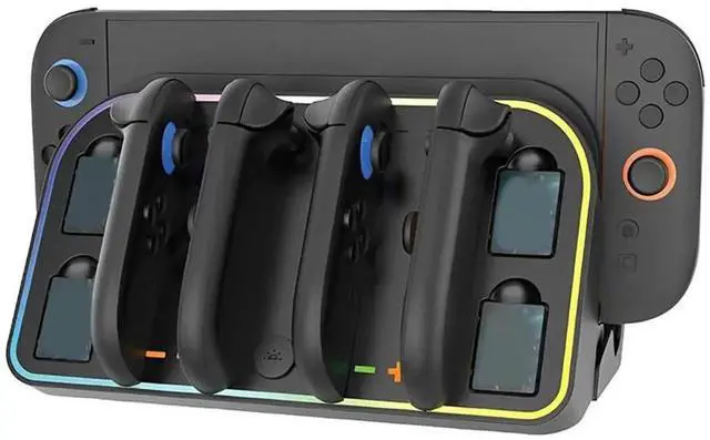 • Wall Mount Charging Dock Station for Switch 2 for Joycon Controller Charger Dock 7 Modes RGB Light Charges Up To 4 Controllers
