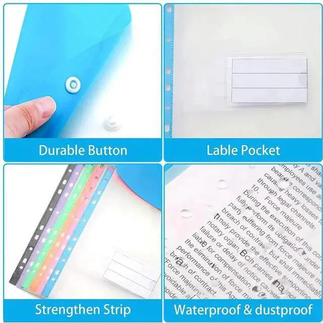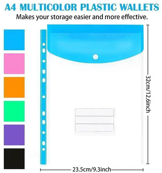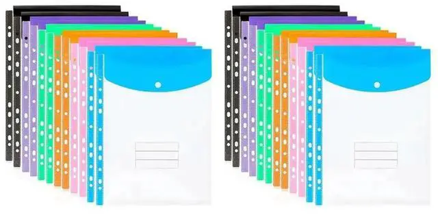 1. 24 Pack A4 Punched Pockets Plastic Wallets - 11 Holes Expandable Binder Pocket Envelope File Folders