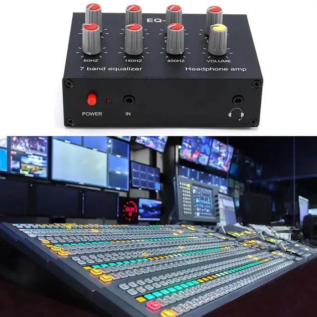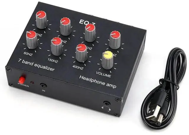 • 7 Band Equalizer 3.5mm Jack Dual Channel Audio Headset Amplifier 12dB High Bass Adjustment for Mobile Phone Game Console
