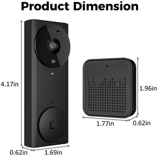 1. 2.4G Wi-Fi Wireless Video Doorbell Two-Way Audio Video Doorbell 110° Wide Angle Night Vision for Home Office Warehouse
