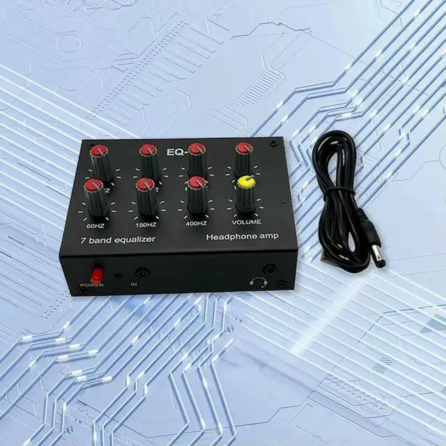 • EQ-7 Sound Equalizer 2 Channel 7-segment Equalizer with 12V Power Adapter Sound Amplifier Adjust High Bass Sound
