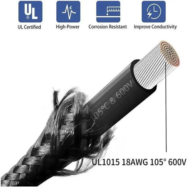 [SPECIFICATIONS] - UL015 18 AWG, Tinned Copper, U-Terminal, 240V-10A, Female to Male, 3 Layers, 3.1 mm Diameter, Nylon Braid, 11.8".