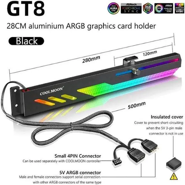 Sliding adjustment, simple and convenient. Compatible with various chassis graphics cards on the market, sliding length of 120mm, support column can be finely adjusted up and down, suitable for different heights of graphics card support height.