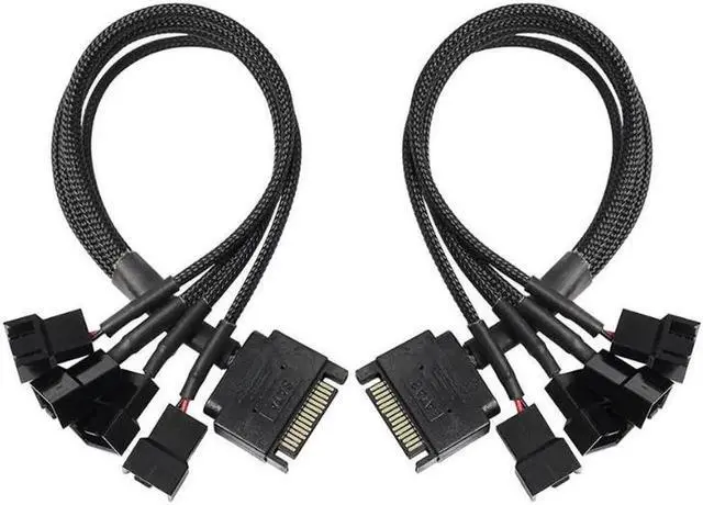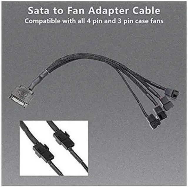 Power Two 3-Pin or 4-Pin (PWM Connector) PC Case Fans At 12V With A SATA Power Connector. High Quality Construction Features High Density Black Sleeving And All Black Connectors For Minimal Wire Visibility