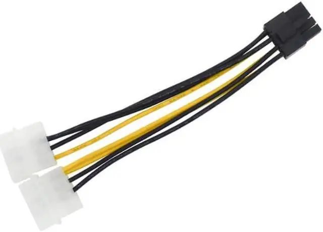 PCIe 8(6+2) pin female to 2 x Molex male cable provides a convenient solution for video graphics card power with two Molex connectors for GPU cards that require more power