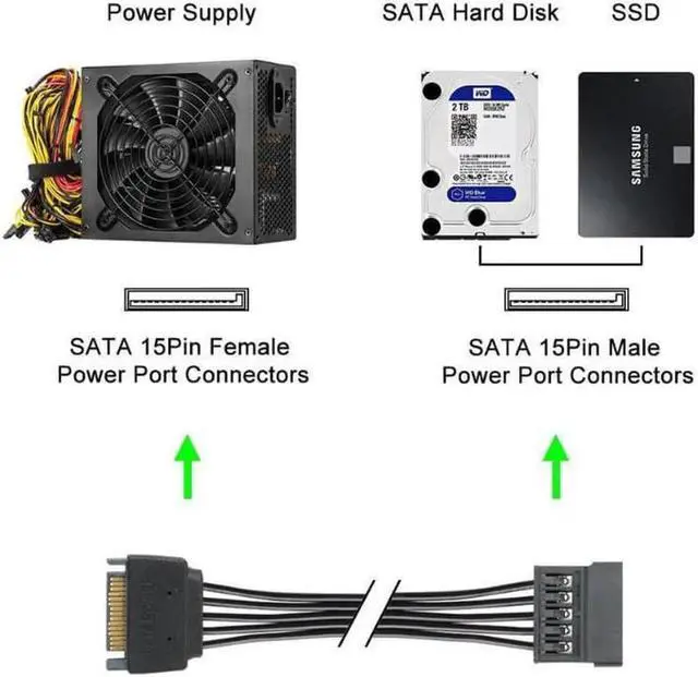 ![Alt view image 3 of 7 - J&D [2-Pack] 15 Pin SATA Power Extension Cable, Male to Female Cable 10 inch, Black](https://c1.neweggimages.com/productimage/nb640/BK3NS25110407B4OCA7.jpg)