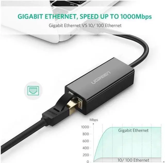 Ugreen USB 3.0 gigabit 10/100/1000Mbps ethernet network adapter enables you to add a network interface to your computer via USB. It is backward-compatible with all existing 10/100 networks. With it you could replace a broken internal network card add a separately routable network interface and transferring files peer-to-peer over Ethernet. Simply insert the adapter into a USB 3.0 port on your computer and begin to transfer large video audio and graphics files between your workstation and the network.