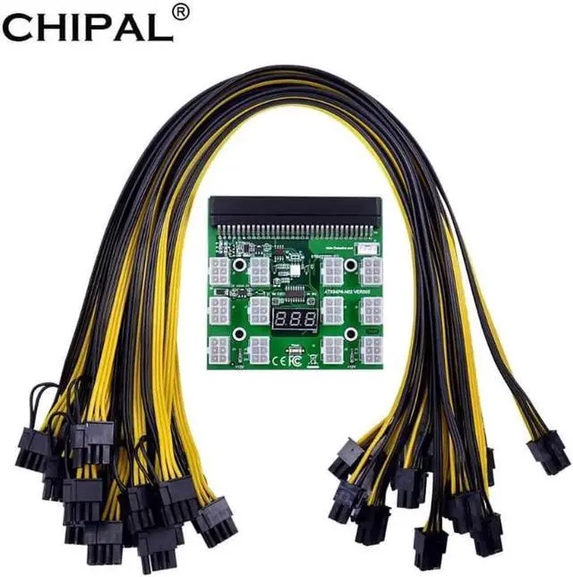 CHIPAL Power Module Breakout Board Kits with 12pcs 6Pin to 6+2 8Pin Power Cable for HP 1200W 750W PSU GPU Mining Ethereum ETH