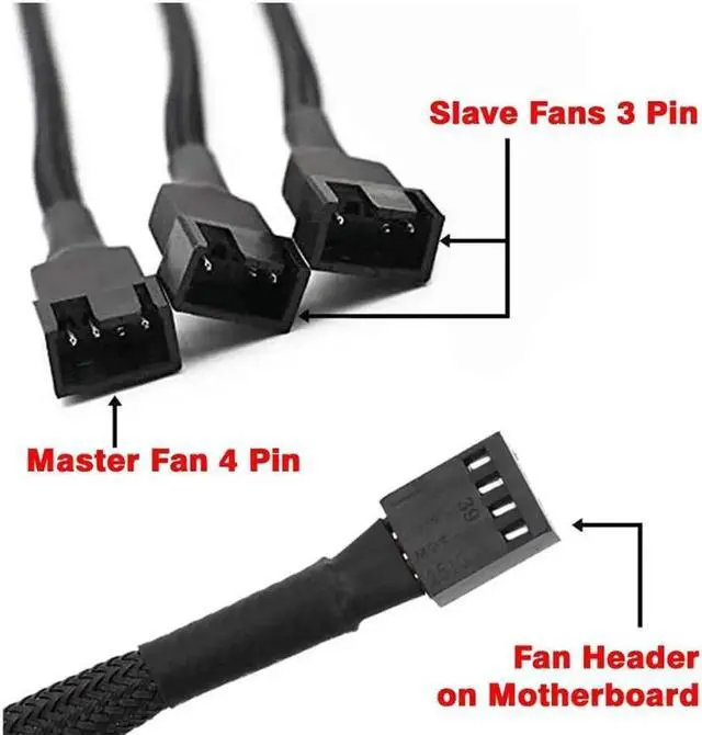 PWM Fan Splitter Cable Y Splitter Computer Pc Fan Power Cable 1 to 3 Ways, Black Sleeved Braided