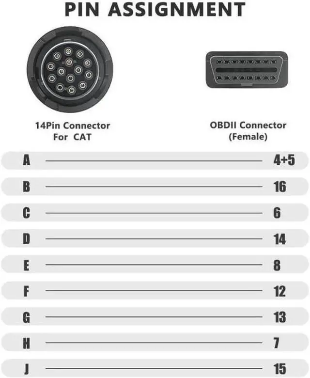 14pin for CAT to OBD2 16pin will allow you to connect compatible Diagnostic tools