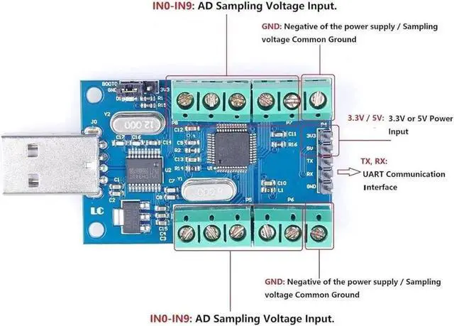 Resolution: 12 Bit; NOYITO USB 10-Channel 12-Bit AD Data Acquisition Module Instructions https: //1drv. ms/u/s! AlzQUCOyZQhKgXdglMdBww95S3Vb? e=phYdR9
