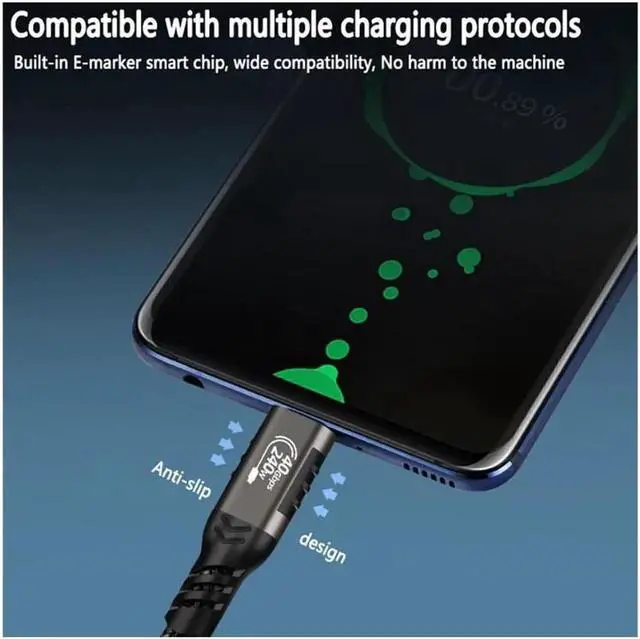 Fast moving Files: The theoretical maximum transmission speed of our 240W USB4 data cable is 40Gbps, which means that 2.5G files can be transferred in 1 second (The real transmission speed up to 2.8GB /s Read and 2.1GB /s Write), and just plug and play freely.