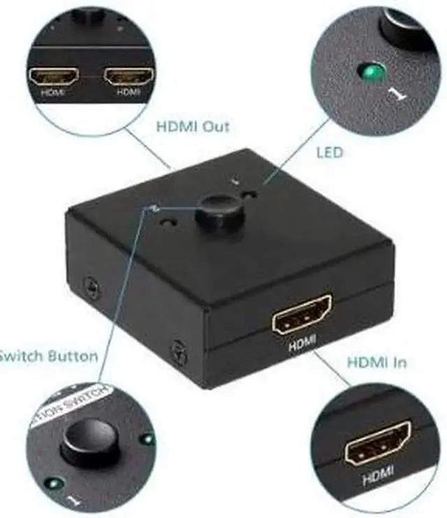 This is an HDMI port bidirectional manual device that can easily switch two high-definition signal sources to a high-definition monitor or projector. In addition, it can also allocate one signal source to two high-definition displays or projectors