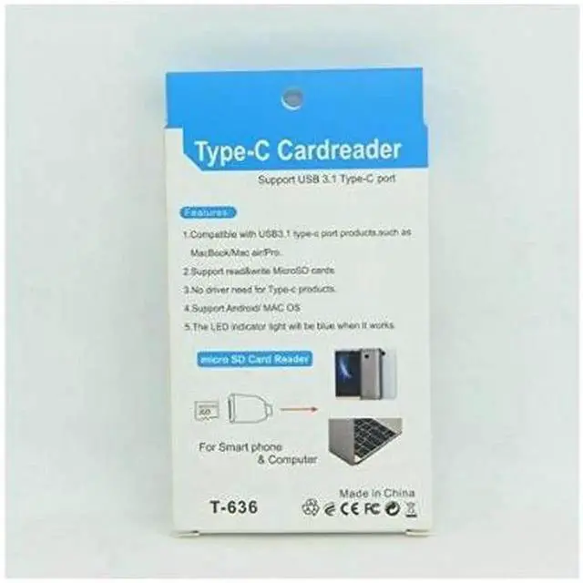 Adapter Card Compatibility: MICRO SD/SDXC/TF card Support USB 3.1 Type-C port Compatible with USB 3.1 port Macbook and Cell phone / Tablet. No need driver The LED indicator light will be blue when it works.