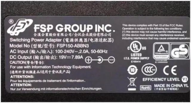 • FSP 150W 19V 7.89A FSP150-ABBN3 AC Adapter for CYBERPOWER TRACER III 15 WITH MECHANICAL NFSV1511 Power Supply Charger