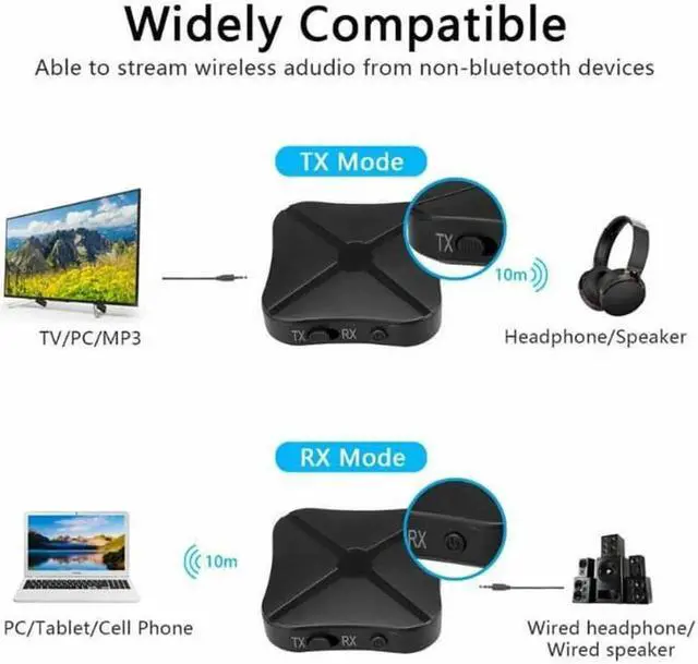 BroadCompatibility: This receiver transmitter adapter can be widely used in your computer, laptop, home stereo system, headset, smartphone, Mp3 player with the included 3.5 mm cable and 3.5 mm to 2RCA cable, CD player, etc.