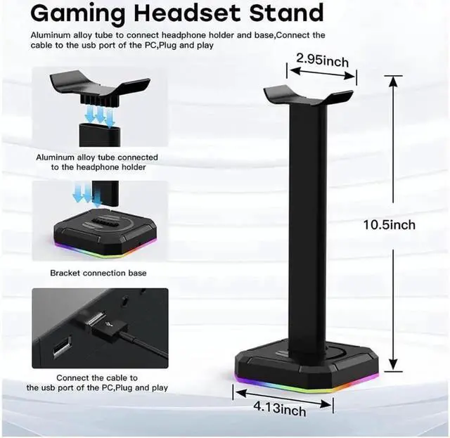 EASY TO ASSEMBLE:Aluminum alloy tube to connect headphone holder and base,Connect the cable to the USB port of the PC,Plug and play.