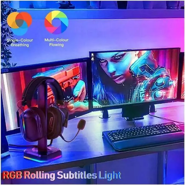 SIZE AND WIDE USE: RGB Headset stand featuring 10.5 inches standing height, Perfect for supports all size headphones including Bose, Beats, Sony, Panasonic, AKG, JBL, Audio-Technica, Sennheiser, Shure and more.Great PC headset holder for your headphone and saving desk space.
