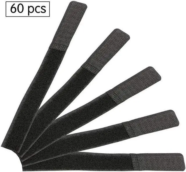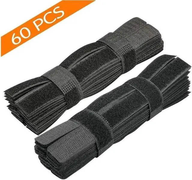 60PCS Reusable Cable Ties, Travel Wire & Cord Straps Organizer, Under Desk Cable Management for Computer/PC/Laptop/TV/Electronics, Black Nylon and 7 Inches in Length
