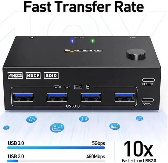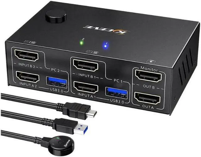 • Dual Monitor KVM Switch HDMI-Compatible USB 3.0 Switcher Extended Controls For 2 Computer Laptop Share Keyboard Mouse Printer