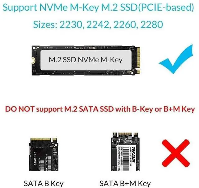 COMPATIBILITY - Only for NVME M-Key M.2 SSD (PCI-E-based). Support Windows / Linux /Mac OS. Fit SSD sizes include 2230, 2242, 2260, 2280. Fits storage up to 2TB.