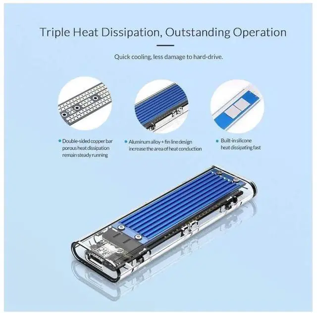 CLEAR DESIGN - Transparent NVMe Case make it easy to identify the hard drive inside. The other side of the aluminum alloy plate reduces overheating.