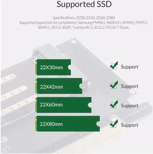 • 32Gbps Super Speed,PCI-Express 3.0 GEN3 X16 expansion card,directly connect to mainboard,support 32Gbps theoretical speed(NVME protocol).