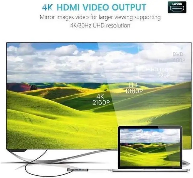 1 x HDMI Port: 4K@30Hz, 4K UHD Resolution, directly stream 4K (3840x2160@30Hz) UHD or Full HD 1080p video to HDTV, monitors, or projectors, and never worry about blur, distortion and delay.