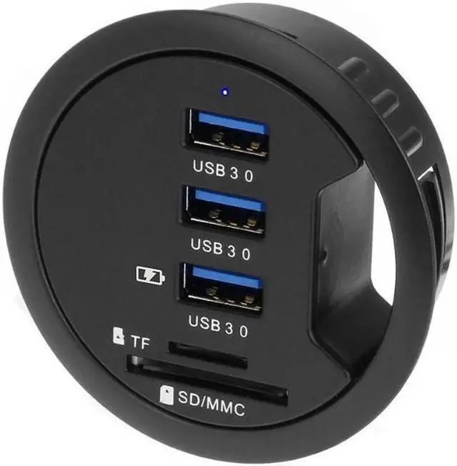 Features and specifications: Fits in a 2.5" grommet hole on your desk with 3 USB 3.1 Gen I Ports With SD / Micro SD Card Reader All Ports are also BC 1.2 charging conpatible LED indicator for power Transfers data at speeds of up to 5Gbps Maximum charing current 2.1A Total Maximum Charing current for all ports (4A) Downward compatible with USB 2.0 devices Installs with Plug-and-Play ease Fully approved EUP compliant 5V4A AC/DC adapter