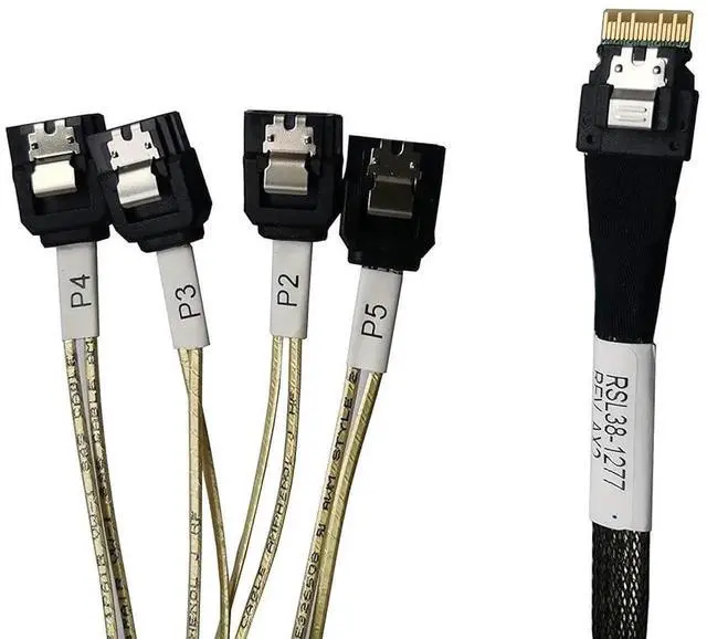 1. SlimSAS 4X to 4*SATA,SFF-8654 38pin to 4xSATA(7pin) Cable, 100CM