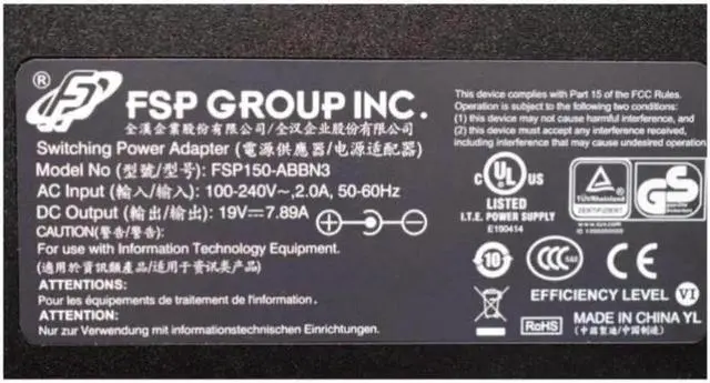 • FSP 150W 19V 7.89A FSP150-ABBN3 AC Adapter for CYBERPOWER TRACER III 15 WITH MECHANICAL NFSV1511 Power Supply Charger