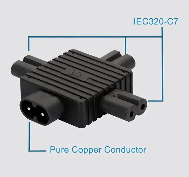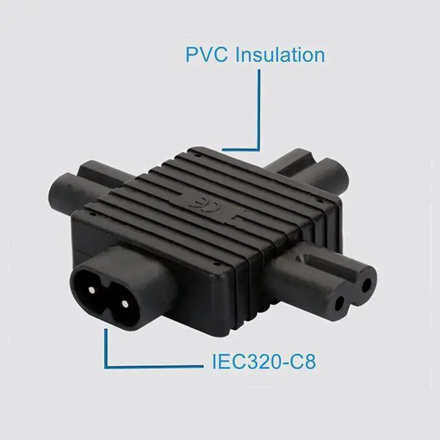 IEC320 Power Converter Adaptor Universal IEC Socket Power Adapter for Computer TV PDU UPS Power Cord (C8 to 3xC7)