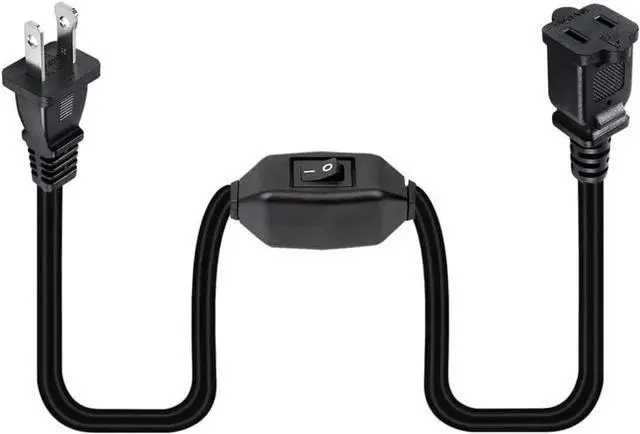 1FT(0.32M) Nema 1-15P to 1-15R Polarized US AC Power Extension Cable with 12A Switch ETL Listed Male-Female Extension Cord (Black)