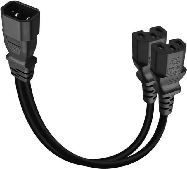 1FT C14 Male PDU Style Computer Power Extension Cable Y Splitter Power Plug Cord (C14 to 2XC15)