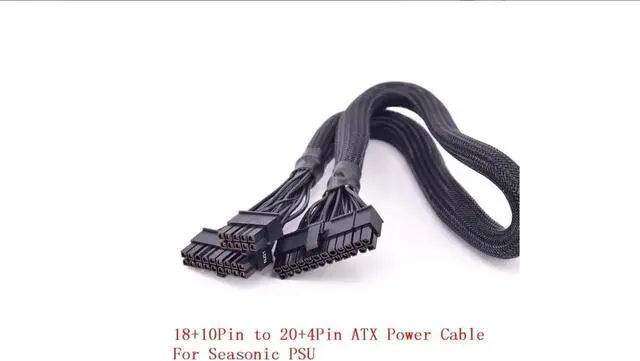 PSU Modular 18+10pin to 24Pin 20+4Pin ATX Power Supply Cable with Sleeved