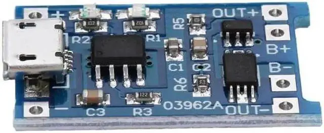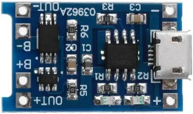 Use: 1. Input port with micro 5pin USB female, can directly use mobile charger for input to the lithium battery, and still retain the input voltage wiring solder joints, can be very convenient. 2. Connect the battery to B + B -, insert mobile phone charger to the USB Female then red light is charging and green is full of charged.