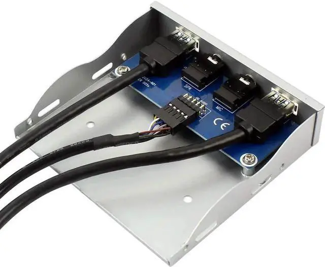 2Ports USB3.0 PC Front Panel Bracket 3.5 Floppy Bay 19Pin to USB 3.0 Hub HD Audio Earphone Mic Connector with Cable for Desktop (Silver White)