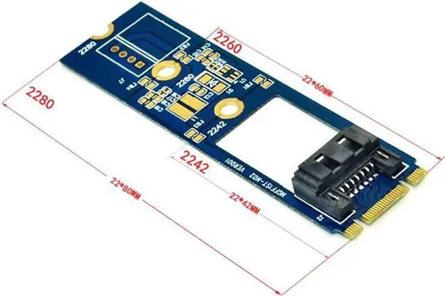 Adjustable Convertion: M.2 to SATA3.0 adapter card can convert M.2 NGFF interface to SATA interface, there are 4 fixed holes on the board, 22*42mm, 22*60mm, 22*80mm respectively.