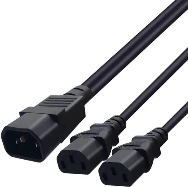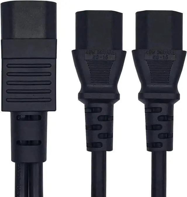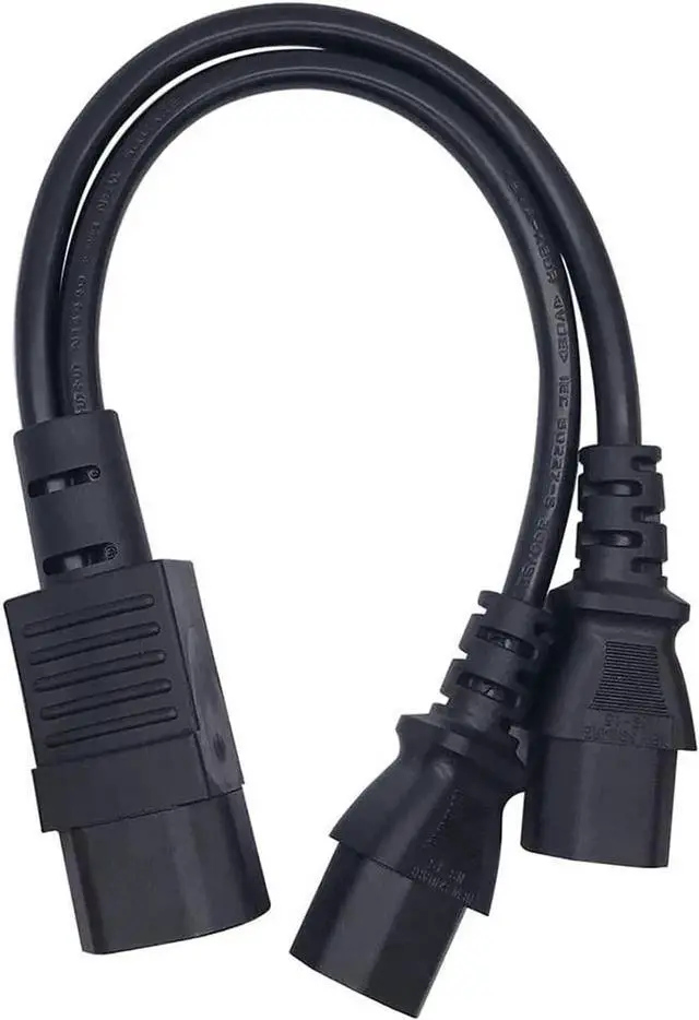1FT C14 Male PDU Style Computer Power Extension Cable Y Splitter Power Plug Cord (C14 to 2*C13)