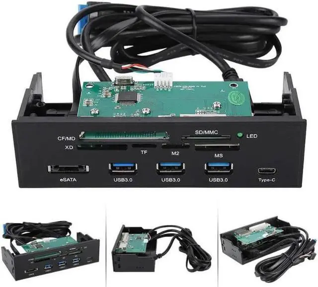 High speed front USB 3.0 interface for an efficient and effortless data transfer. 6 card slots offer quick and easy access to the most common-used card formats, support M2, MSO, SD, MS, XD, 64G CF card. High quality material ensure durability, LED indicator make you keep an eye on work status. Equipped with eSATA and USB 3.1 port to meet your needs. Can be easily and neatly installed into a 5.25" drive bay on your desktop to give you convenient access.