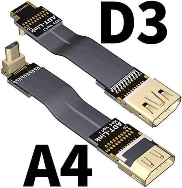 ADT-LINK FPV Cable for HDMI Micro Mini Flat Camera Connector 5cm-50cm Flexible Wire Line 18Gbps 4K@50/60 2160p for HDMI2.0 for FPV Camera (25cm,A4-D3)