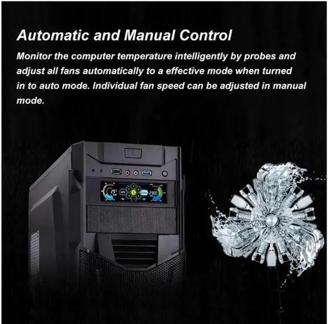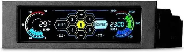 Monitor the computer temperature intelligently by probes and adjust all fans automatically to a effective mode when turned in to auto mode. Individual fan speed can be adjusted in manual mode.