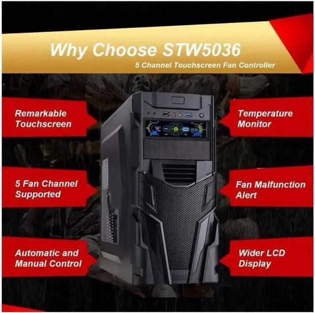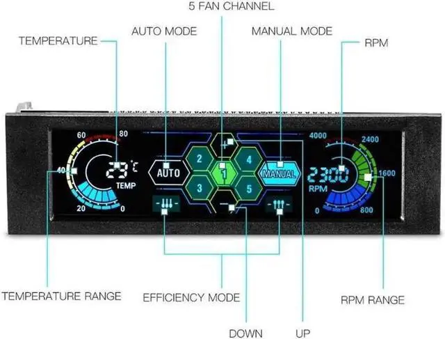 5.25" Fan Controller 5 Channel Touchscreen Fan Controller Temperature Monitor Automatic Speed Control LCD Front Panel for Computer Cooling Fans
