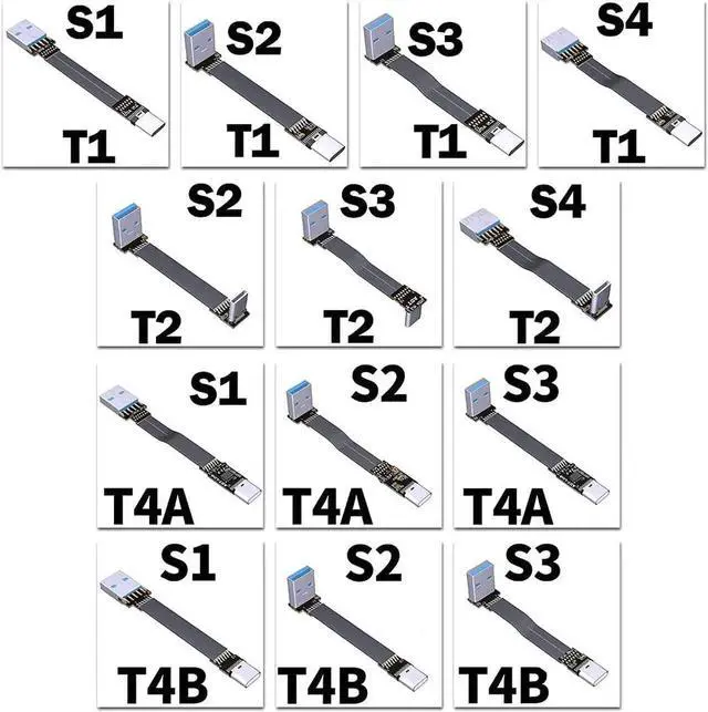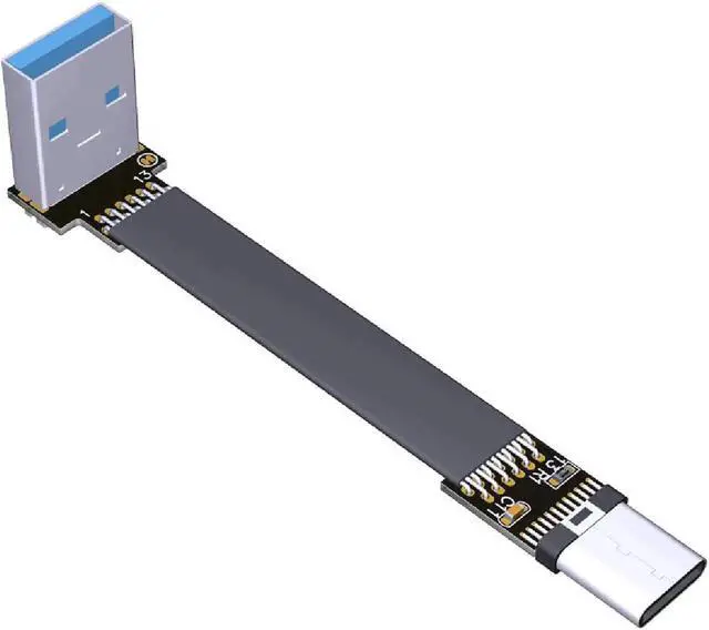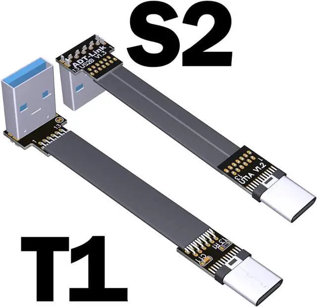 ADT-LINK USB 3.0 Type-A to USB3.1 Type-C Male Up/Down Angle USB Data Sync & Charge Cable USB-C Cord Connector Adapter FPC FPV Flat (0.25m,S2-T1)