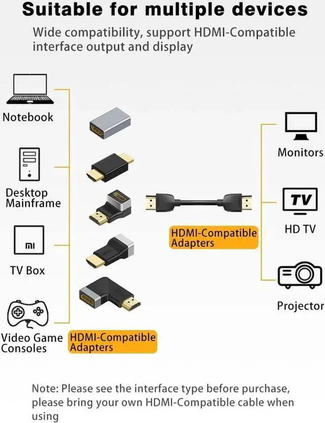 HD Adapter 4K/8K Compatible with HDMI 2Pack Female Male to Female Fully Shielded HD Connector (Side Bend M to F 4K)