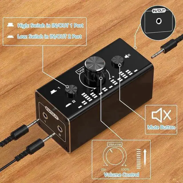 3.5 mm Jack Audio Selector AUX 3.5 mm Stereo Audio Switcher with Volume Control for Speaker Headphone