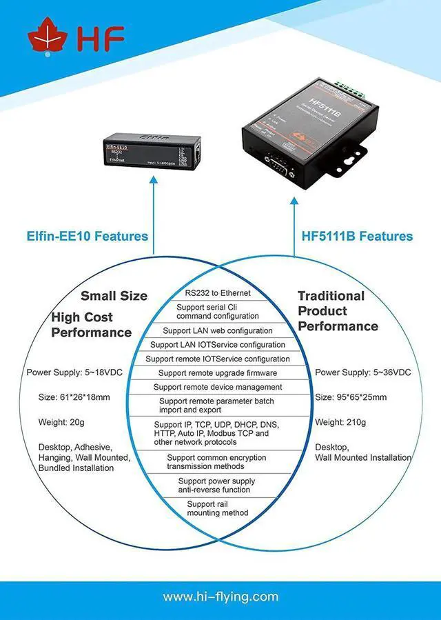 HF Elfin-EE10 Serial Server Serial Port RS232 to Ethernet Serial Port ModbusTCP/HTTP Support TCP/IP Telnet Modbus TCP Protocol (Single Serial Server)